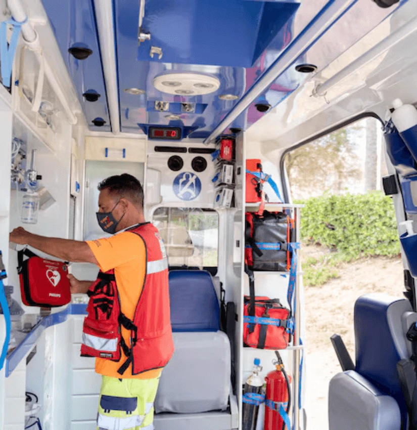 These services are managed by trained medical helpers, such as paramedics or emergency medical staff, and are equipped with tools like oxygen, defibrillators, stretchers, and medications.